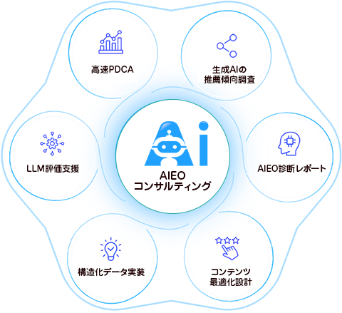 「生成AIに最適化された検索環境で“推薦される企業”になるための施策設計」を支援するサービスです。SEOや広告とは異なり、AIに選ばれるための情報構造やコンテンツ設計、信頼性の示し方を重視します。