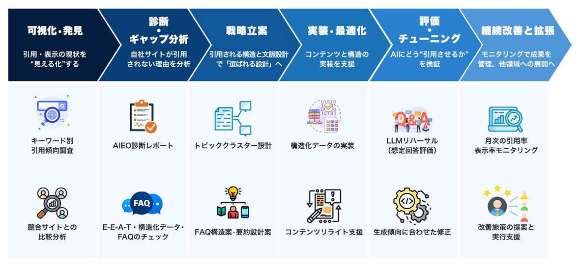 AI による“引用される”集客チャネル構築から、コンテンツ実装・構造化データ設計・PDCAによる改善まで、