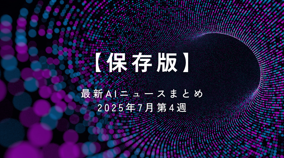 2025年7月第4週も、生成AIの進化と広がりを実感させる話題が続々登場。
