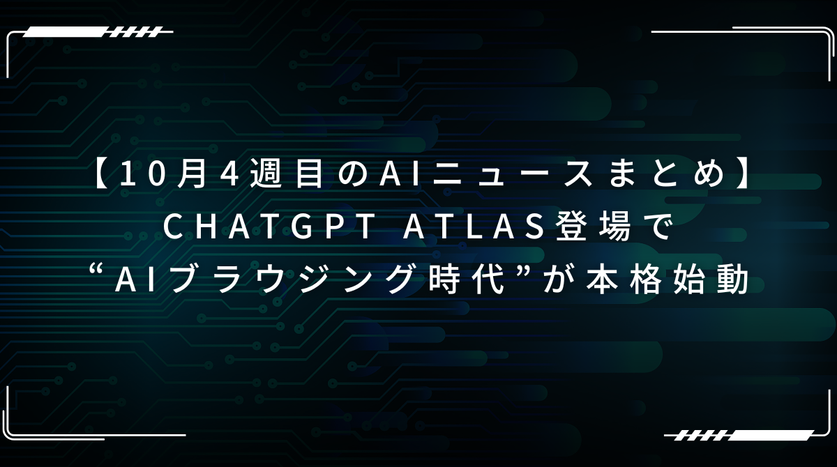 10月第4週は、ChatGPTとWebブラウザを融合した「ChatGPT Atlas」が登場し、AI活用の新しい形が注目を集めました。