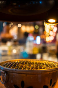 Barbecue charcoal grill stove or charcoal stove in Korean style restaurant Barbecue charcoal grill stove or charcoal stove in Korean style restaurant. Close up