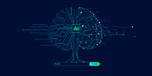 Illustration of abstract stream, Ai brain. Artificial intelligence. Big data, data transfer, data flow, large language model, generative AI, binary concept