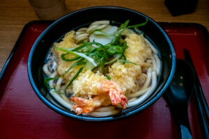 Shrimp Tempura Udon: A delightful combination of crispy shrimp tempura and thick, chewy udon noodles, served in a flavorful and comforting broth.