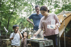 Family enjoy camping