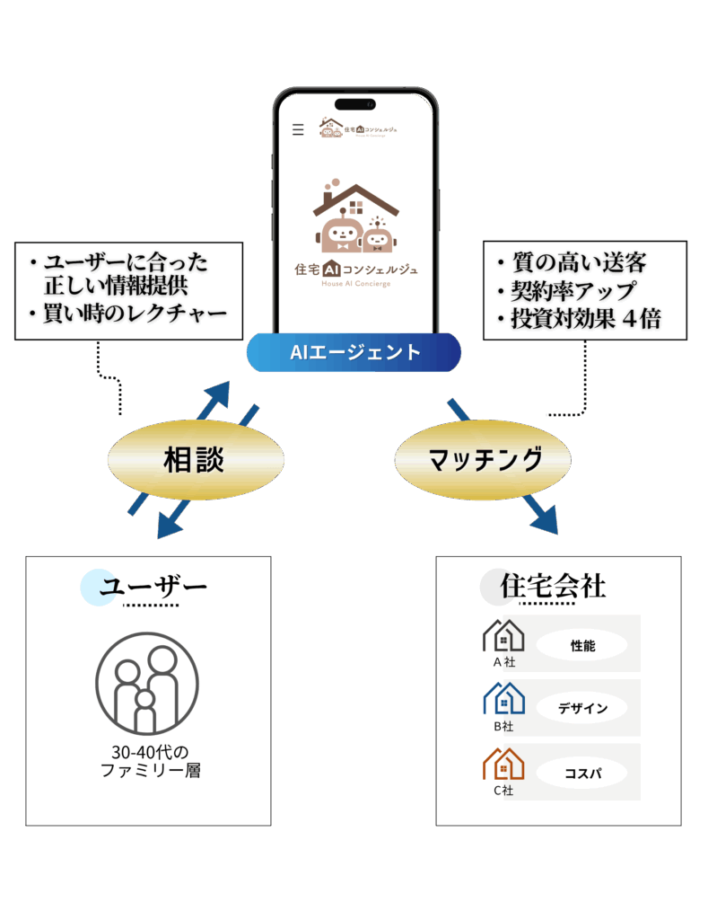 住宅会社ごとの強みを学習したAIが、相性の良いユーザーを自動マッチング。