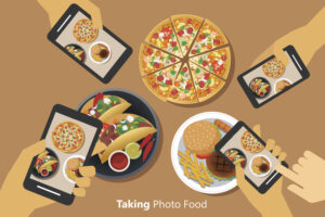 People take a photo of food with smartphone
