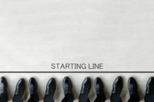 Business team standing by starting line