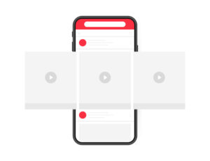Social media design concept. Smartphone video player with interface carousel on social network. Modern flat style vector illustration.